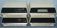 Left: Two more Altos 586s, slightly newer, with a modified bezel to accomodate 1/2 height floppy drives. The lower unit is an OEM version sold by CDC as the "Control Data 114". On the right are Expansion cabinets, top is a tape drive unit, bottom is a CDC branded hard drive expansion cabinet.