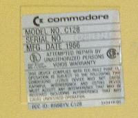 Information label on bottom of C64 main unit.