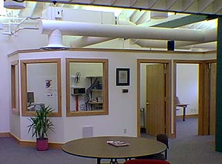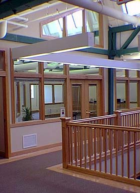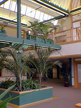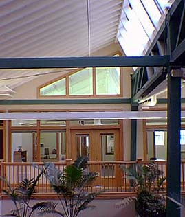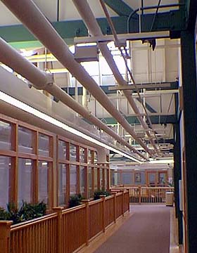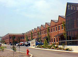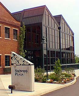 The historic Showers Brothers Furniture Building, Bloomington, Indiana. This view shows Showers Plaza, the private office section of the 155,000 square foot building.